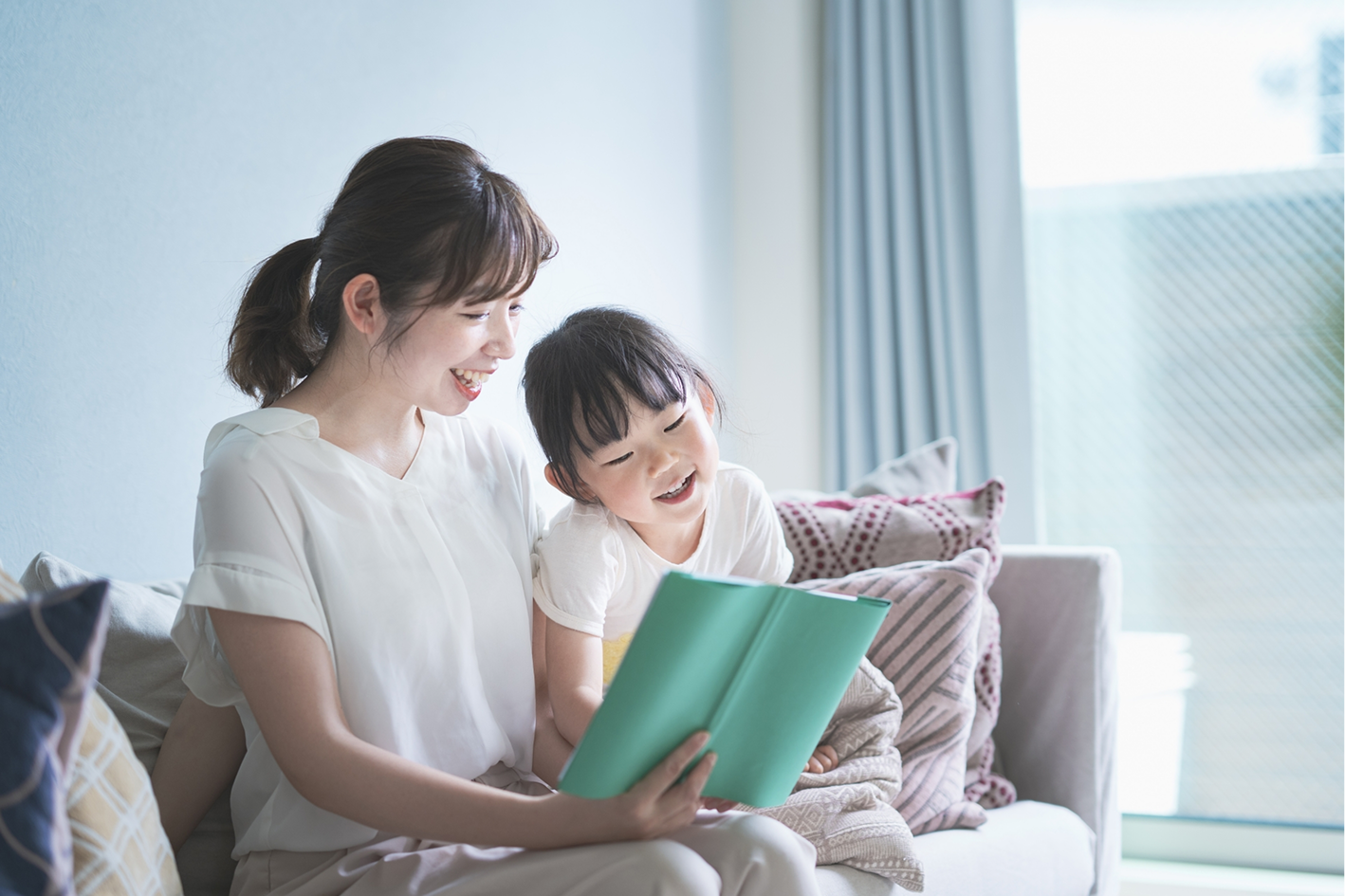 大きな窓から差し込むやわらかな光、風が通り抜けるリビング、家事がスムーズに進む動線。